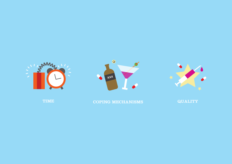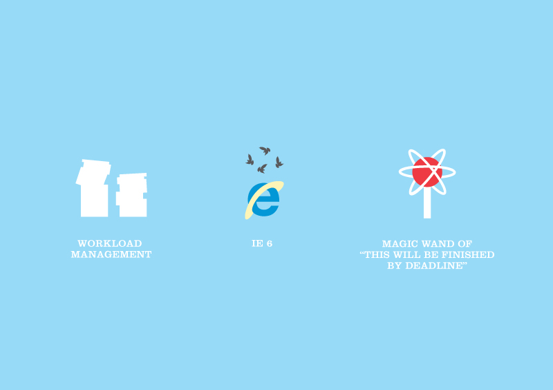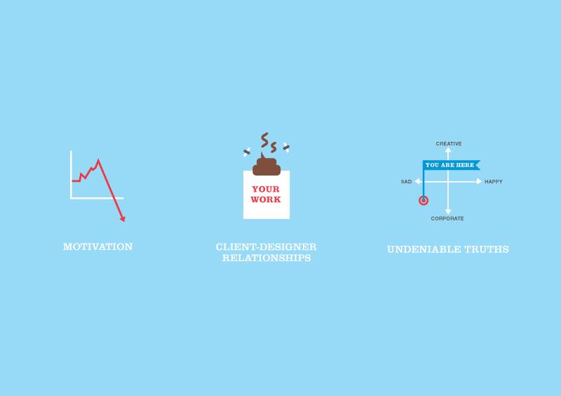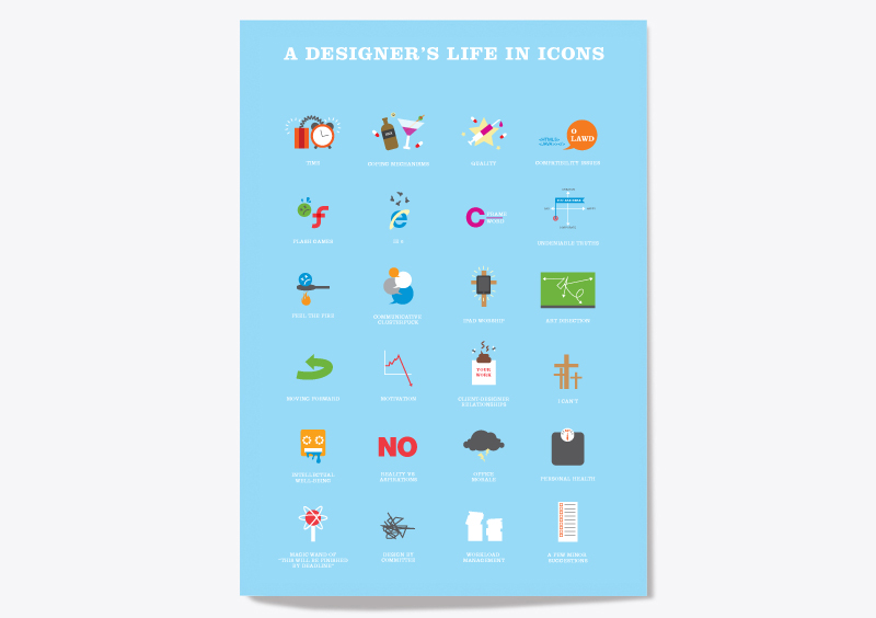 A series of icons making fun of the stereotypical struggles and stereotypes of the modern graphic designer.