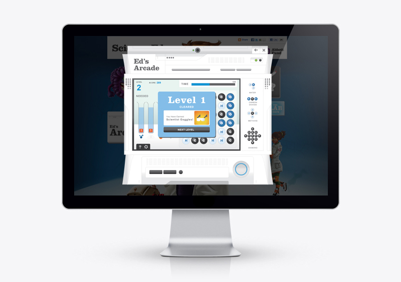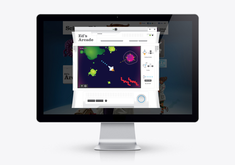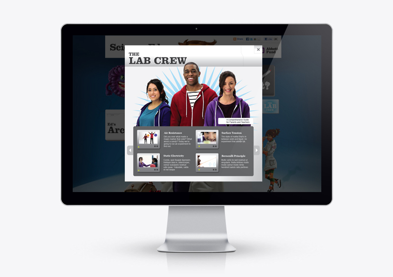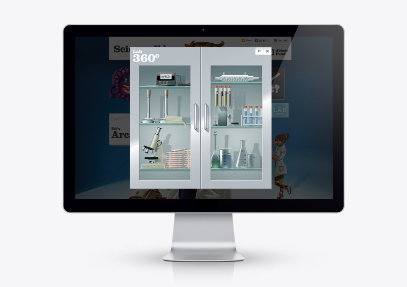 An educational science website for kids sponsored by Abbott. Characters 'Ed and friends' help users investigate their curiousity and keep a family-friendly tone through a series of interactive modules. Features an interactive lab, science-themed games, FAQs, cartoon interviews of scientists, fun do-it-at-home experiments, and even a photo gallery for students who have visited one of Abbott's family science nights brought to local schools. Created with Julian Leon, Victor Rivera, and Dan Koh at Corporate Agenda.